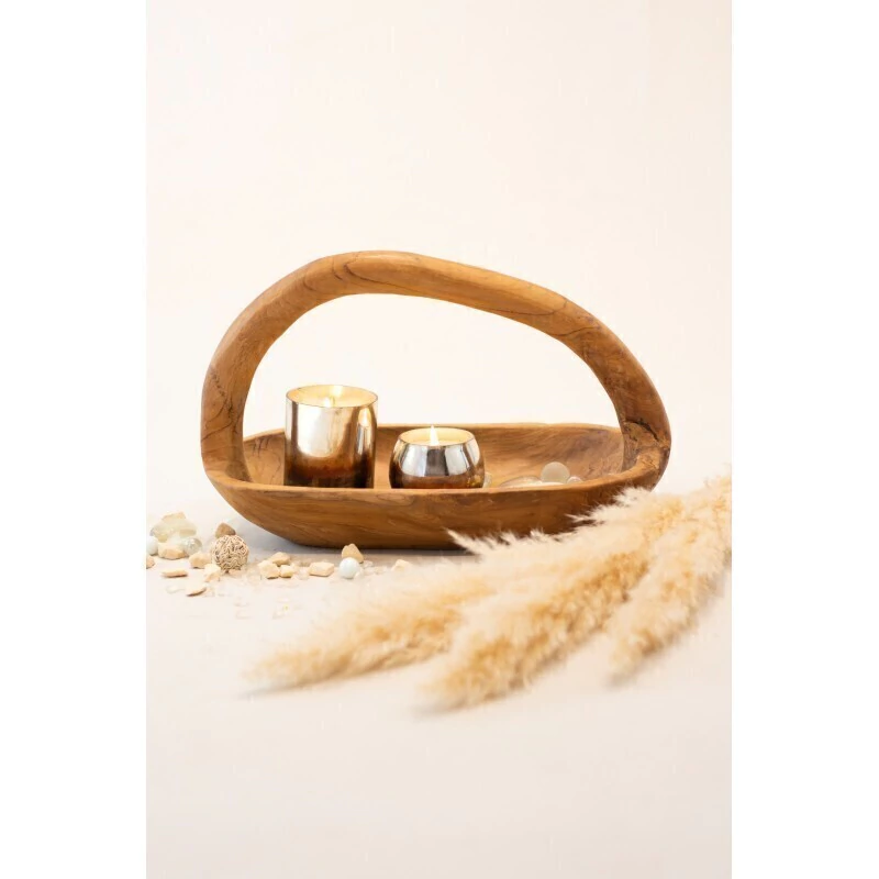 Bandeja de centro con manija en madera natural.