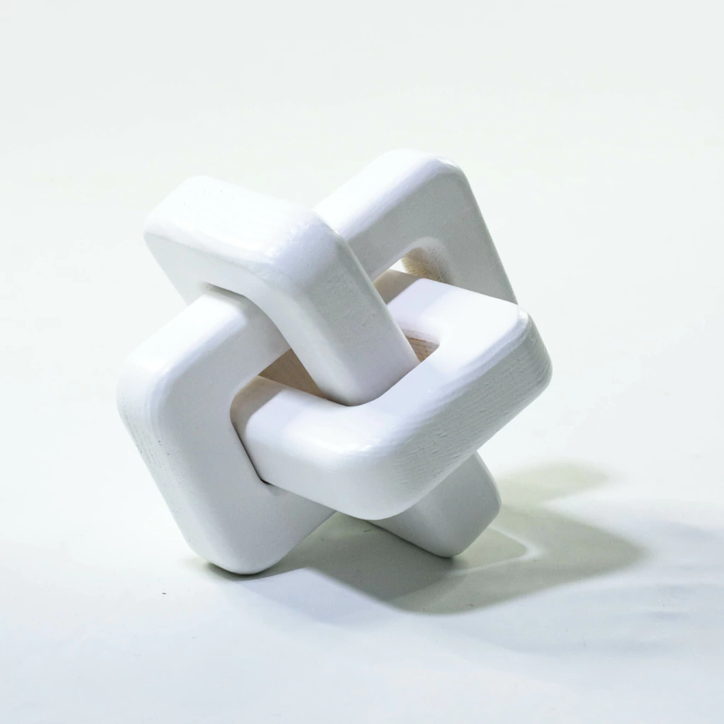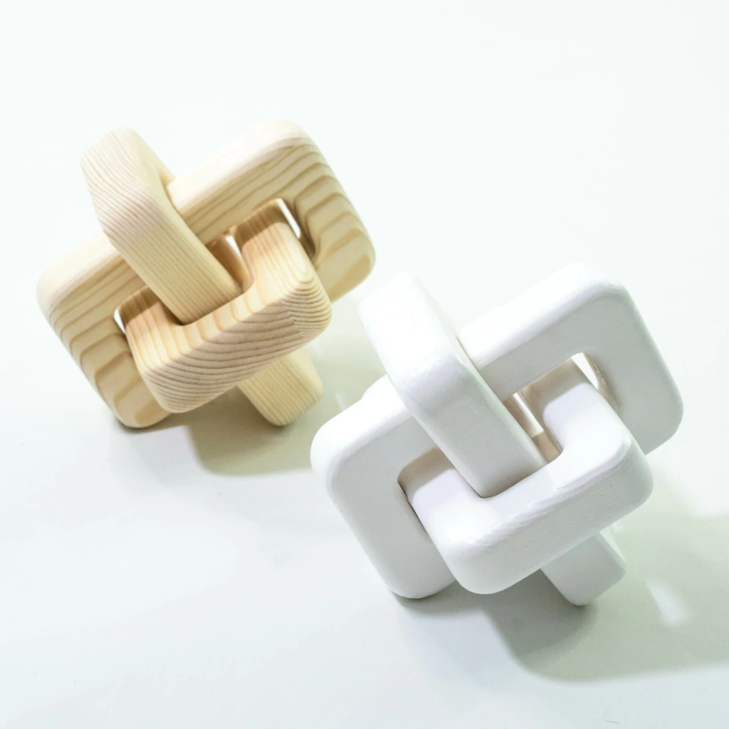 Eslabon de madera de pino color blanco.