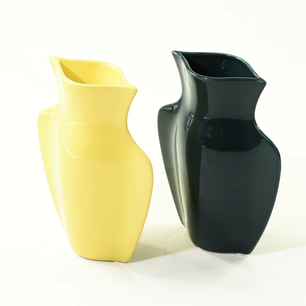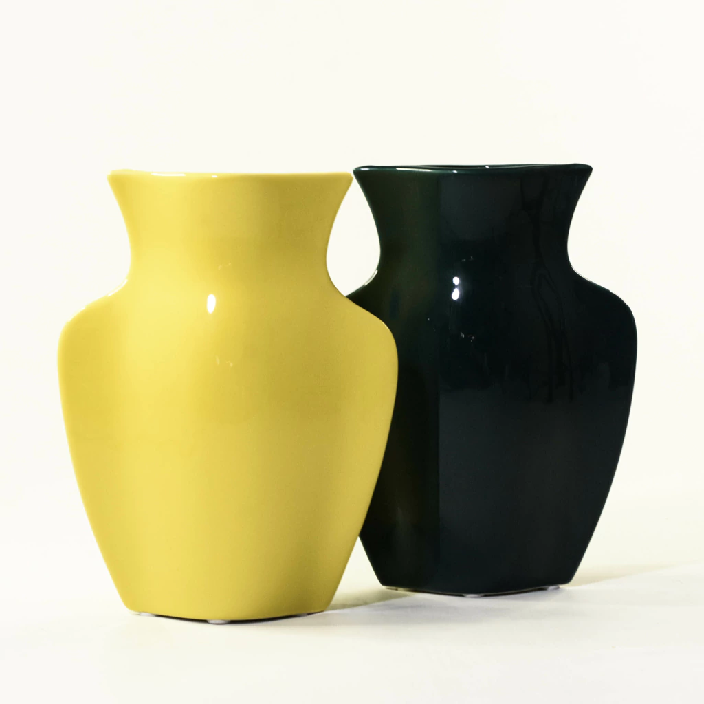 Florero de cerámica color verde.