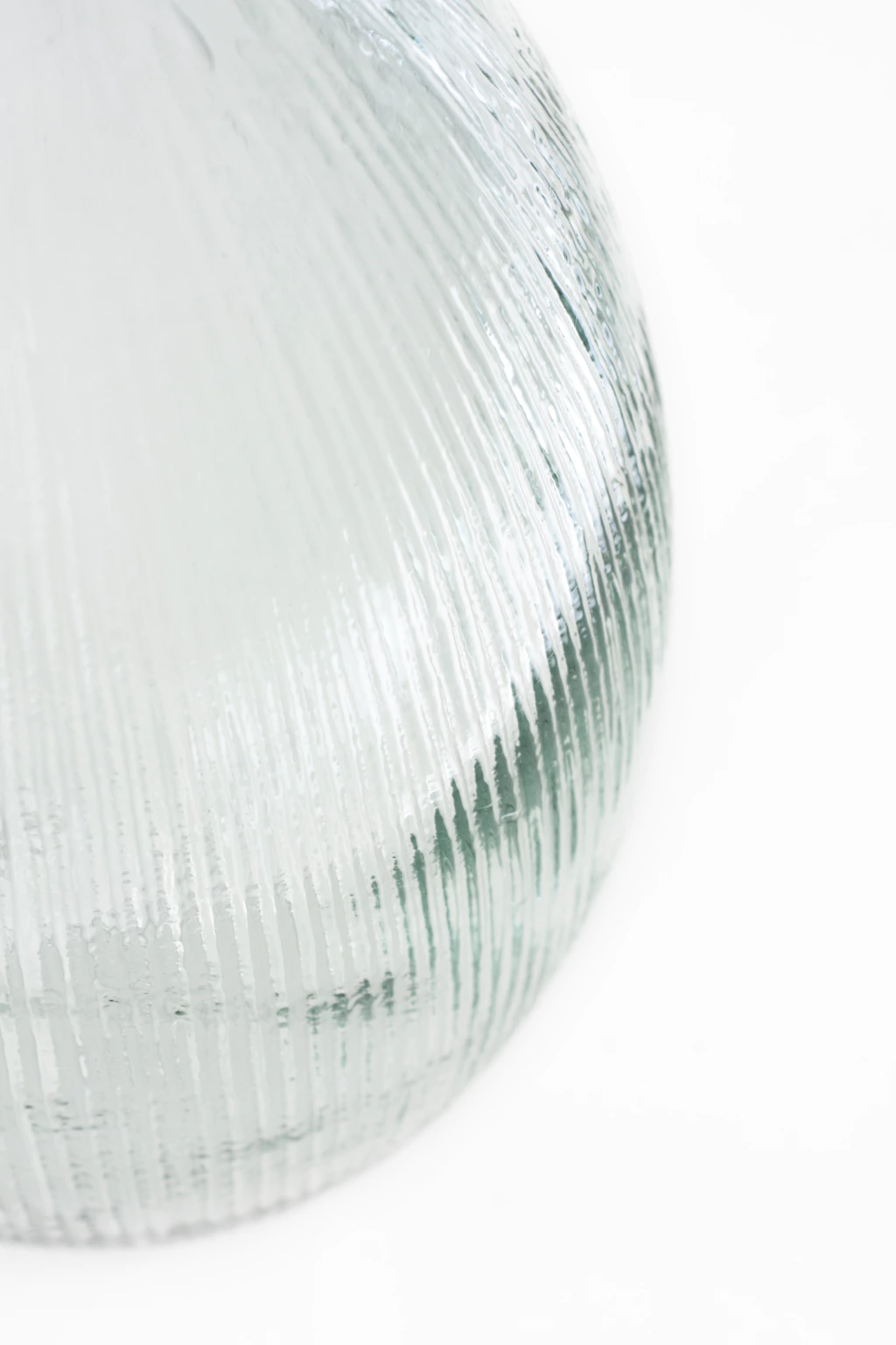 Jarron de vidrio 100% reciclado transparente con textura a rayas en relieve