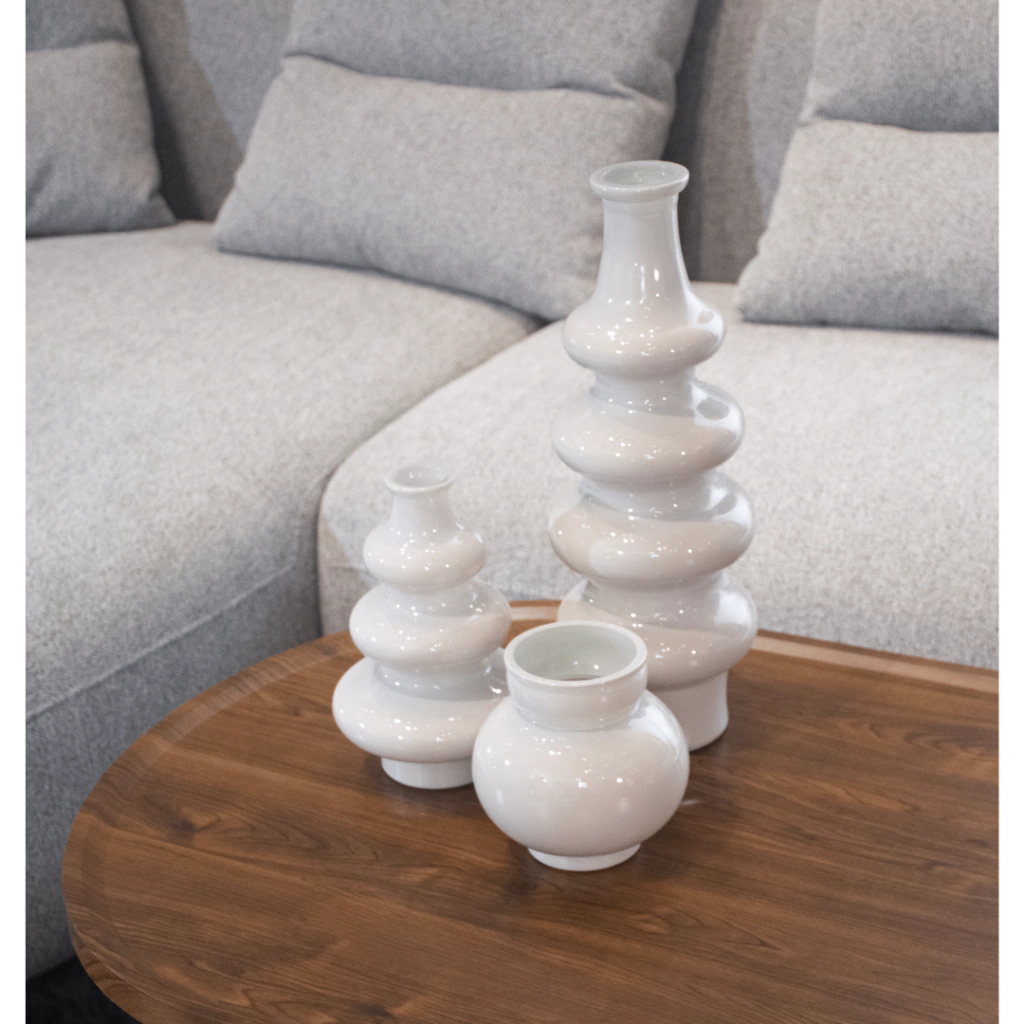 Jarrón de vídrio 100% reciclado color blanco grisaceo.