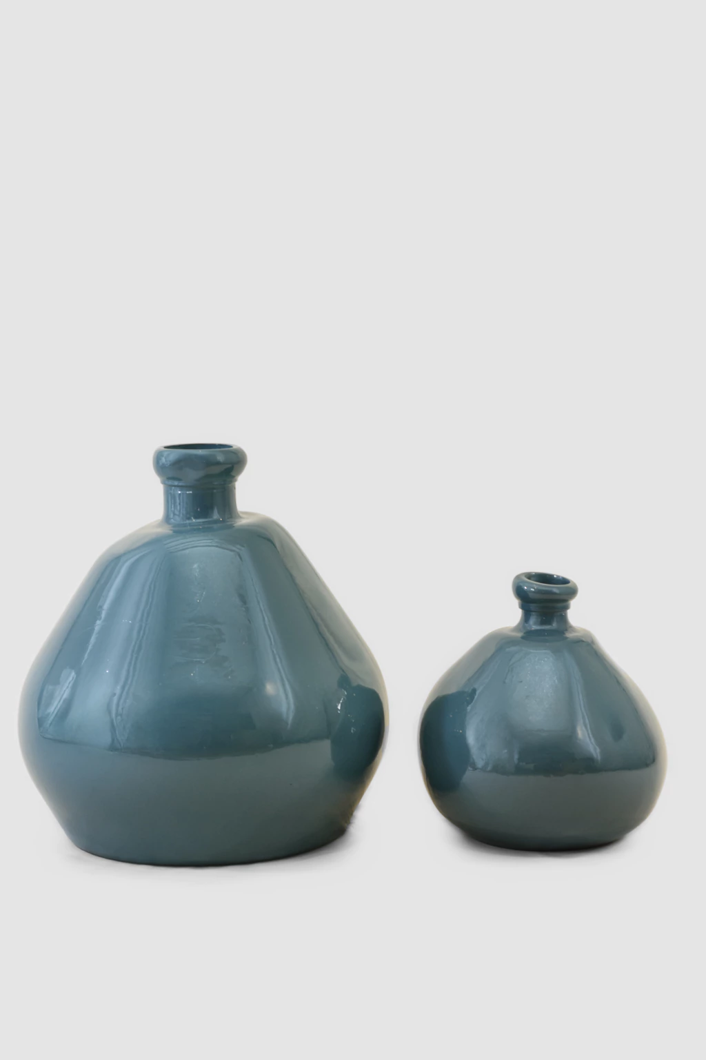 Jarrón de vidrio 100% reciclado fabricados con la técnica de soplado con tintes naturales.