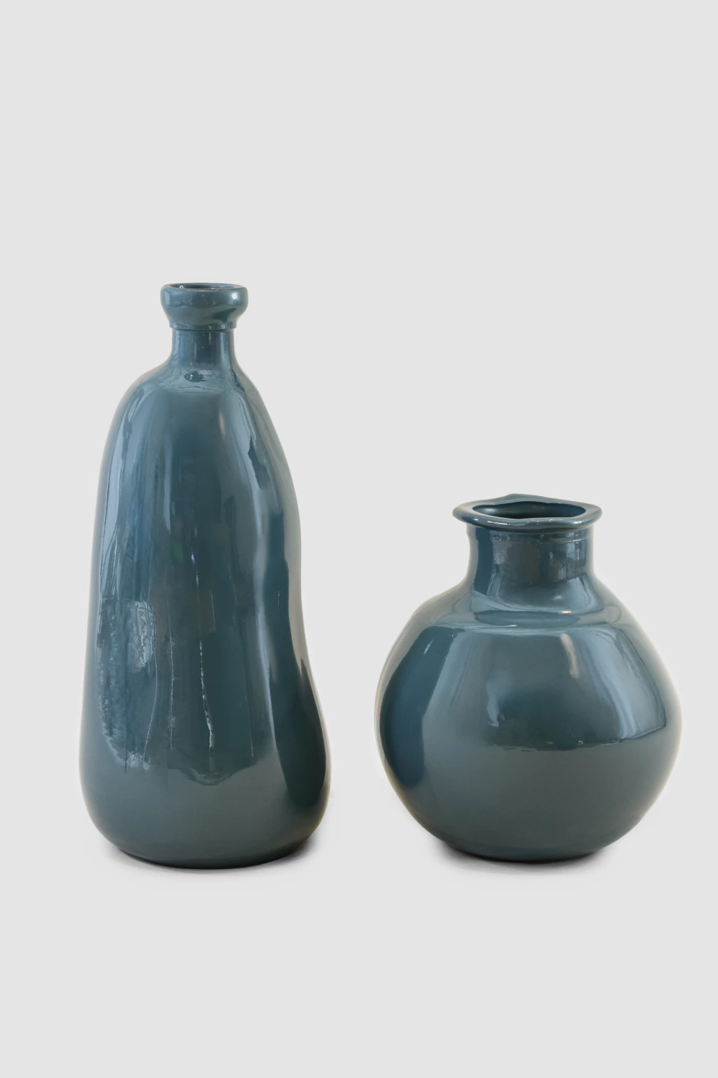 Jarrón de vidrio 100% reciclado fabricados con la técnica de soplado con tintes naturales.