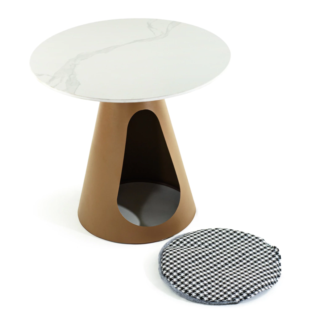 El detalle diferencial está en su base: cuentan con un espacio integrado especialmente pensado para mascotas pequeñas, creando un rincón acogedor y práctico que combina mobiliario y confort animal en una misma pieza.