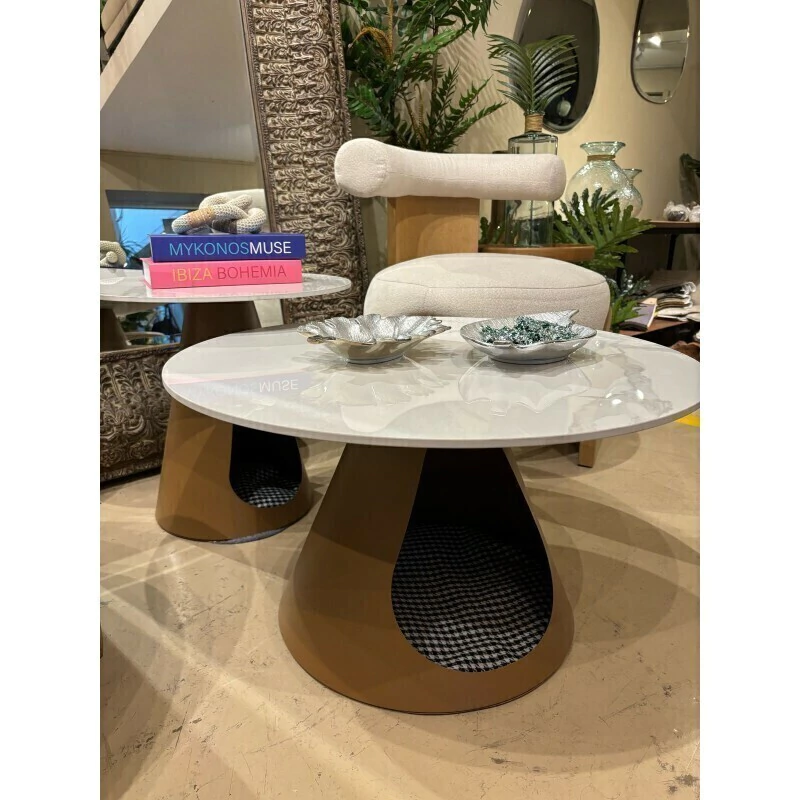 Innovadoras y multifuncionales, estas mesas auxiliares están diseñadas para quienes buscan integrar diseño y practicidad en el hogar. Con base cónica metálica opaca y tapa circular en acabado liso, aportan un estilo contemporáneo y elegante.