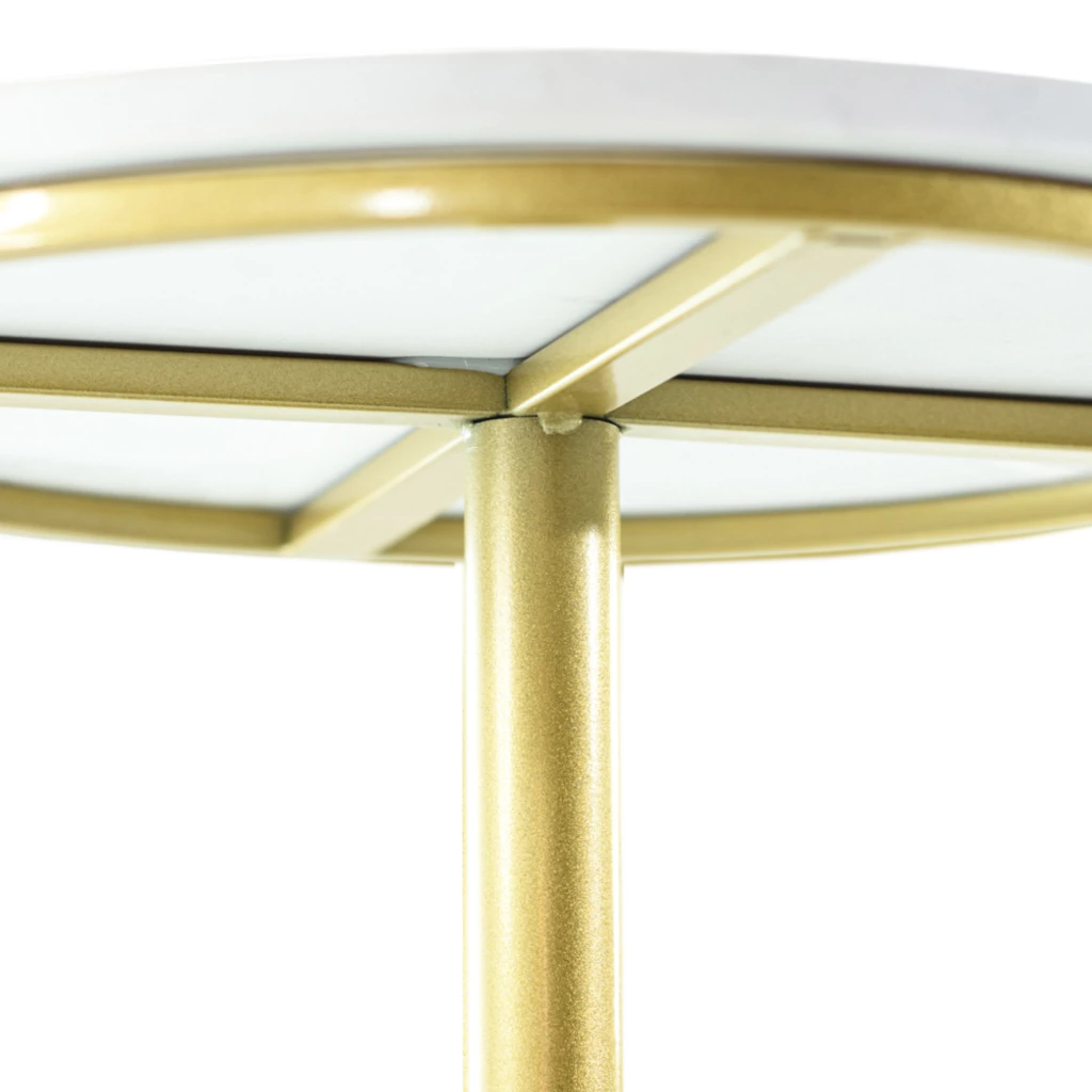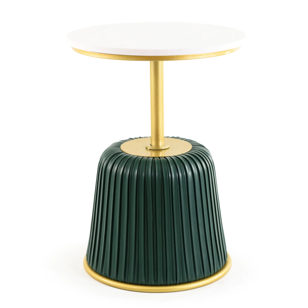 Base de metal dorado con eco - cuero verde y tapa de marmol.