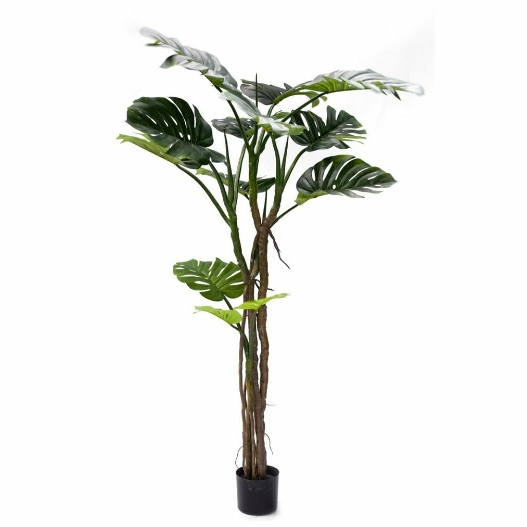 Planta artificial con base de maceta negra, con un total de 16 hojas. Su interior cuenta con una estructura alámbrica para que cada quién le de el volúmen deseado.